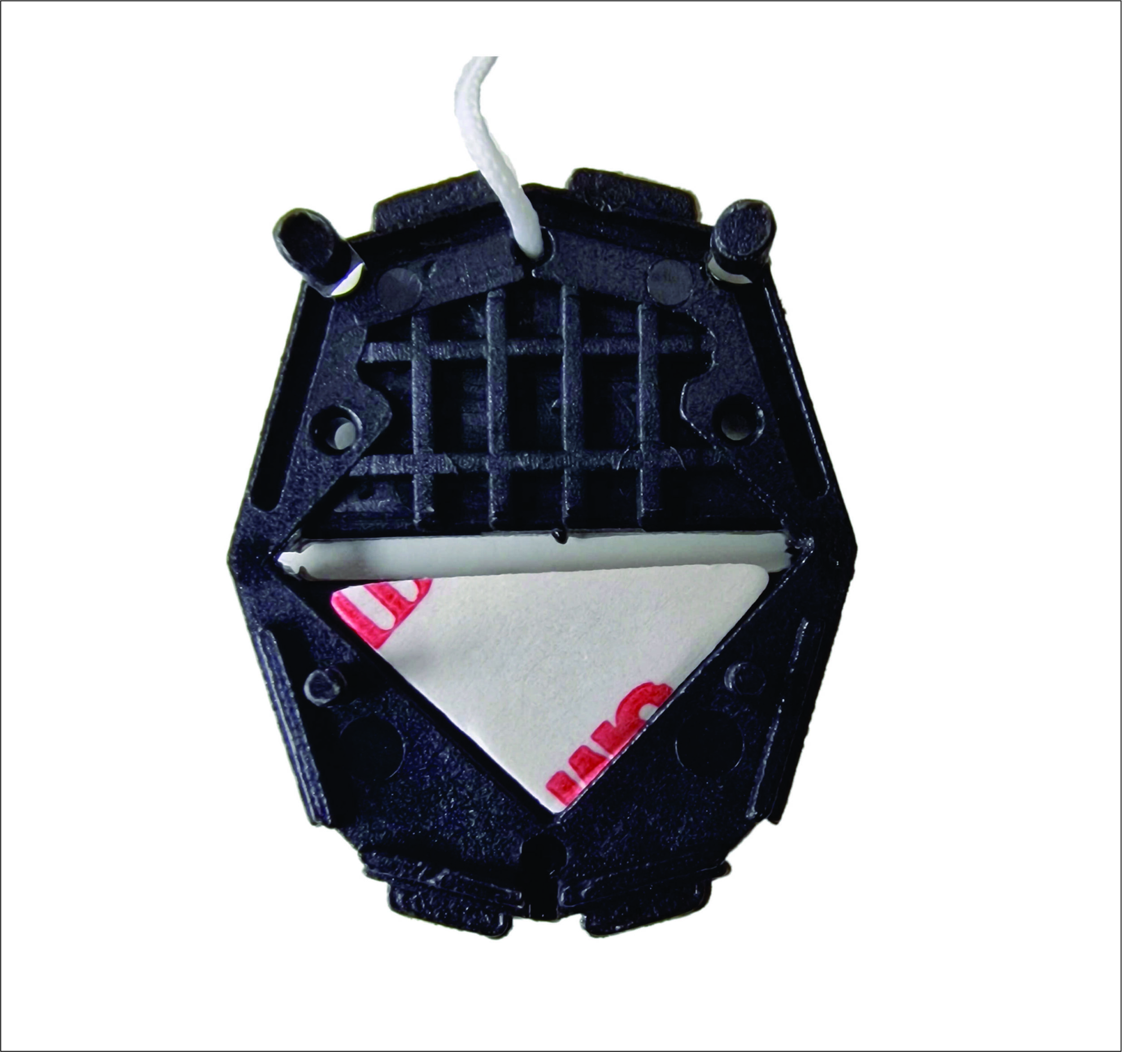 Tapefestet er utformet som en sommerfugl, og foldes rundt hjørnet på plastkortet.